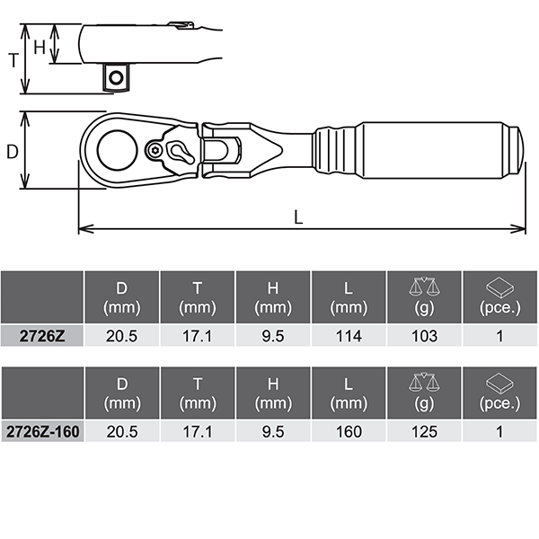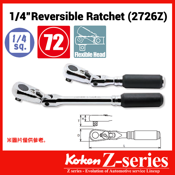 Koken-Z-series 2726Z系列 1/4″分頭搖頭棘輪板手(1/4″Z系列搖頭波柄)
