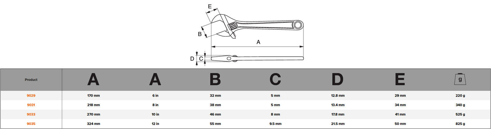 Bahco魚嘜-9029-9035系列大口活動板手(大口仔士巴拿)