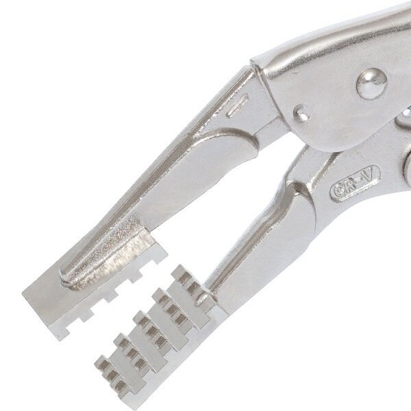 • 深槽鉗口可以拆卸和更換各種尺寸的彈簧鋼絲軟管夾(水喉碼),並將其安全地鎖定在所需位置。