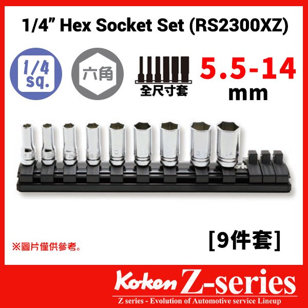 Koken-Z-series 1/4″分頭公制中長套筒組連磁石底座(1/4″Z系列一條龍中長卜士套裝)