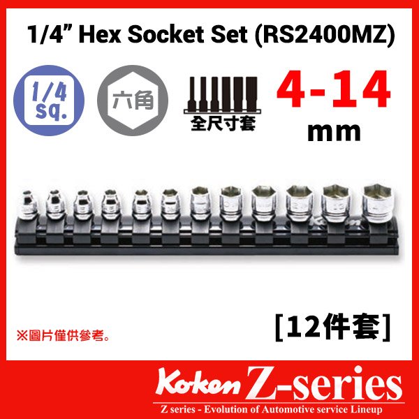 Koken-Z-series 1/4″分頭公制特短套筒組連磁石底座(1/4″Z系列一條龍卜士套裝)