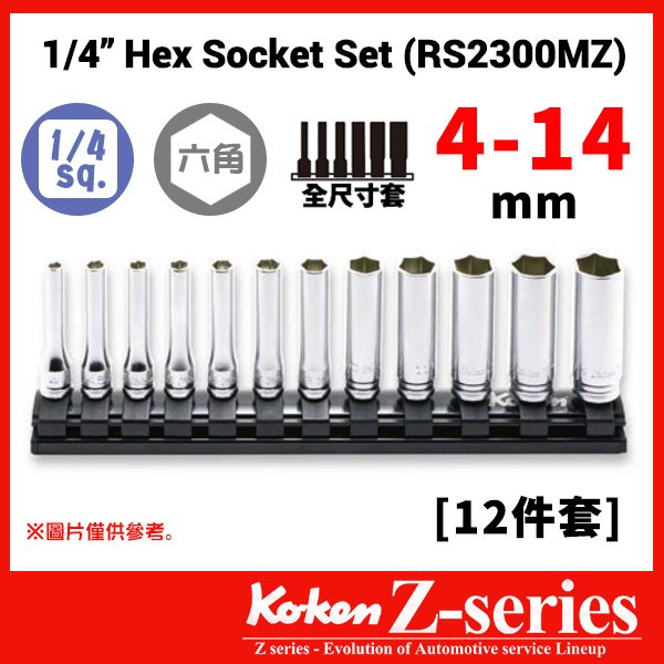 Koken-Z-series 1/4″分頭公制長套筒組連磁石底座(1/4″Z系列一條龍長卜士套裝)