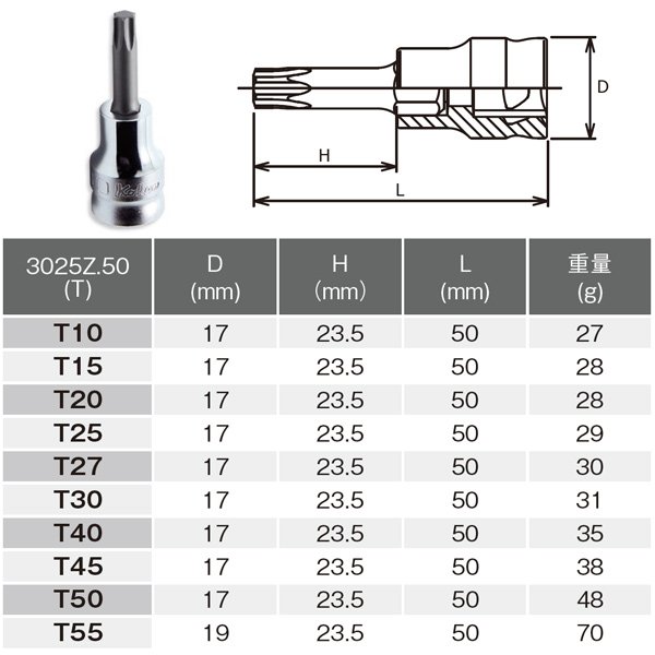 - 桿身設計採用圓身設計,與我們的通用星型套筒相比更容易係狹窄空間的情況下使用
