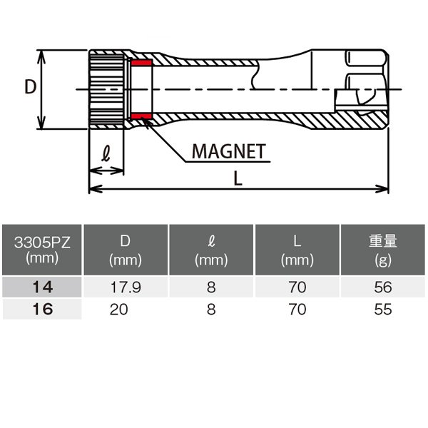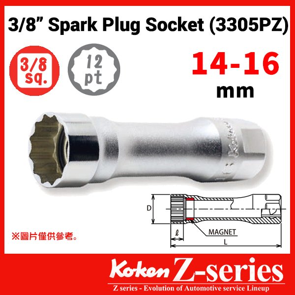 Koken-Z-series 3305PZ 3/8″分頭超薄有磁火星塞套筒(火咀卜)
