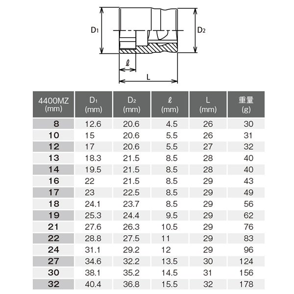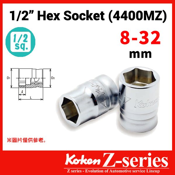 Koken-Z-series 4400MZ 1/2″分頭公制特短套筒(1/2″Z系列特短卜士)