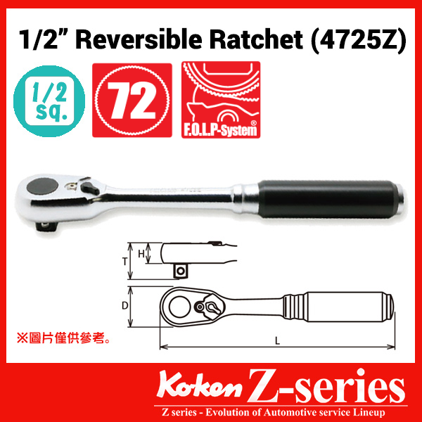 Koken-Z-series 4725Z 1/2″分頭棘輪板手(1/2″Z系列波柄)