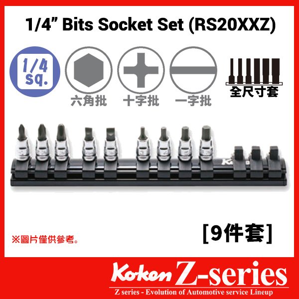 Koken-Z-series RS20XXZ 1/4″一字十字六角匙混合套筒組