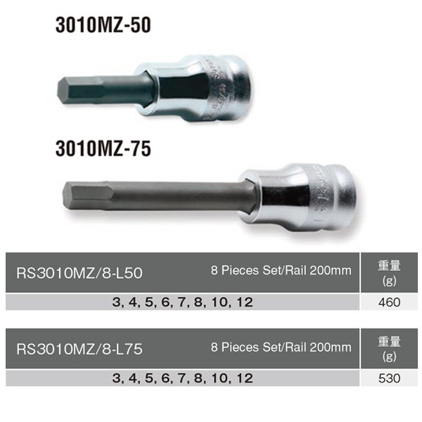 Koken-Z-series RS3010MZ系列 3/8″分頭公制六角匙套筒組連磁石底座(3/8″一條龍六角匙卜套裝)