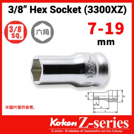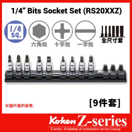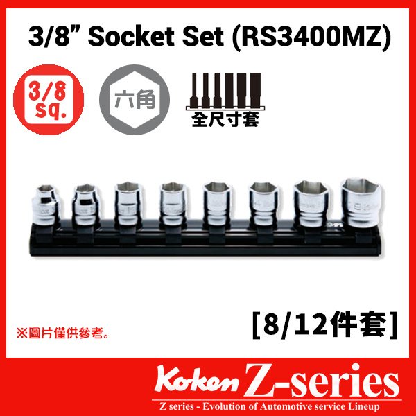 Koken-Z-series RS3400MZ系列 3/8″分頭公制特短套筒組連磁石底座(3/8″ Z系列一條龍卜士套裝)