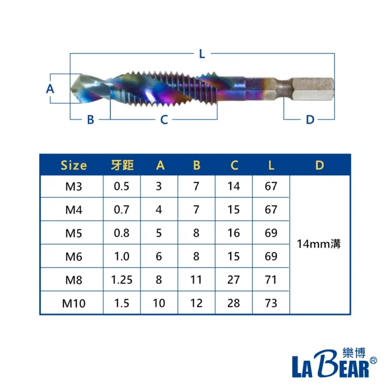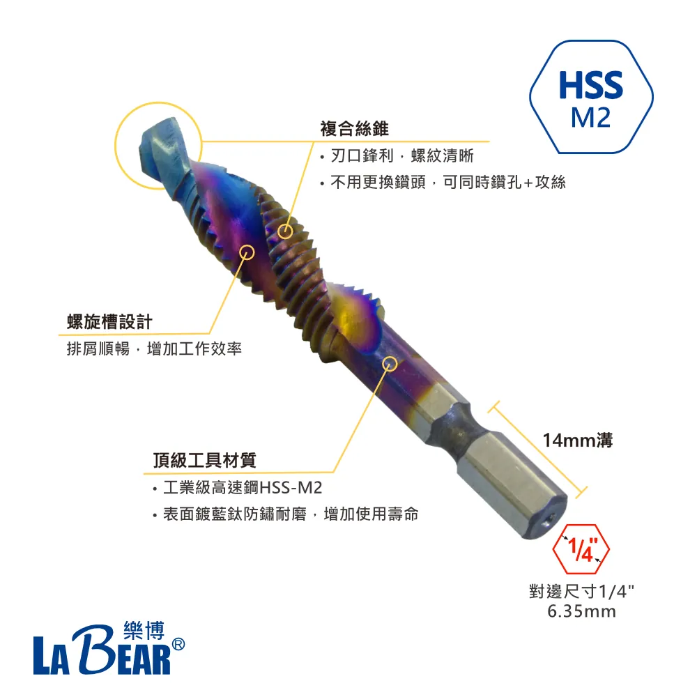 La bear樂博-複合絲錐 M3-M10 鑽攻一體(鑽咀連㗳)