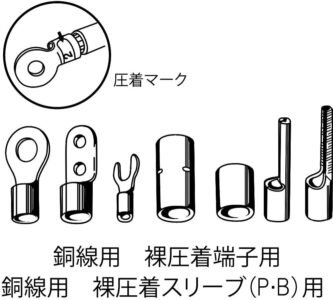 裸端子(線耳)用:0.3、0.5、1.25、2、3.5、5.5 mm²