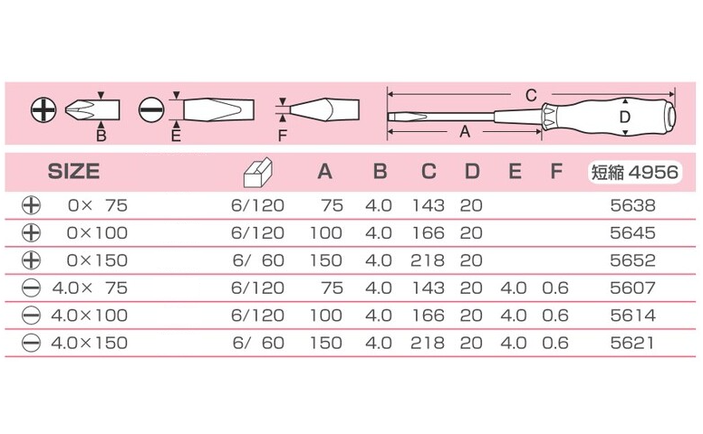 4mmx75 ,4mmx100 ,4mmx150 ,PH0x75 ,PH0x100 ,PH0x150 |
